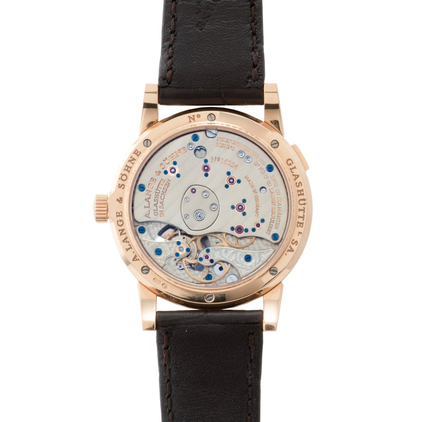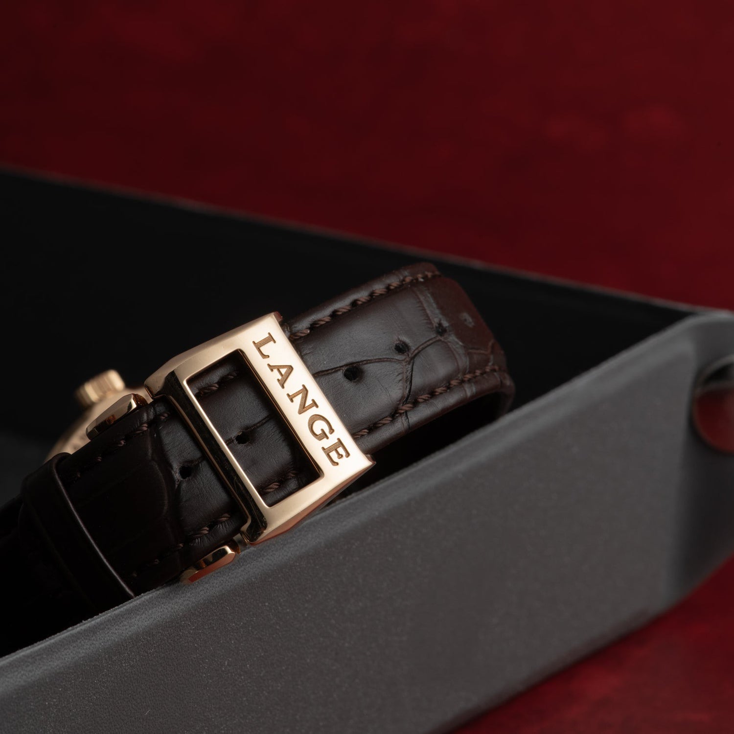 In spite of the complication, this reference is housed in Lange’s classic 38.5mm case sizing. Perfectly proportioned in the modern era, this size is extremely comfortable on a variety of wrists.