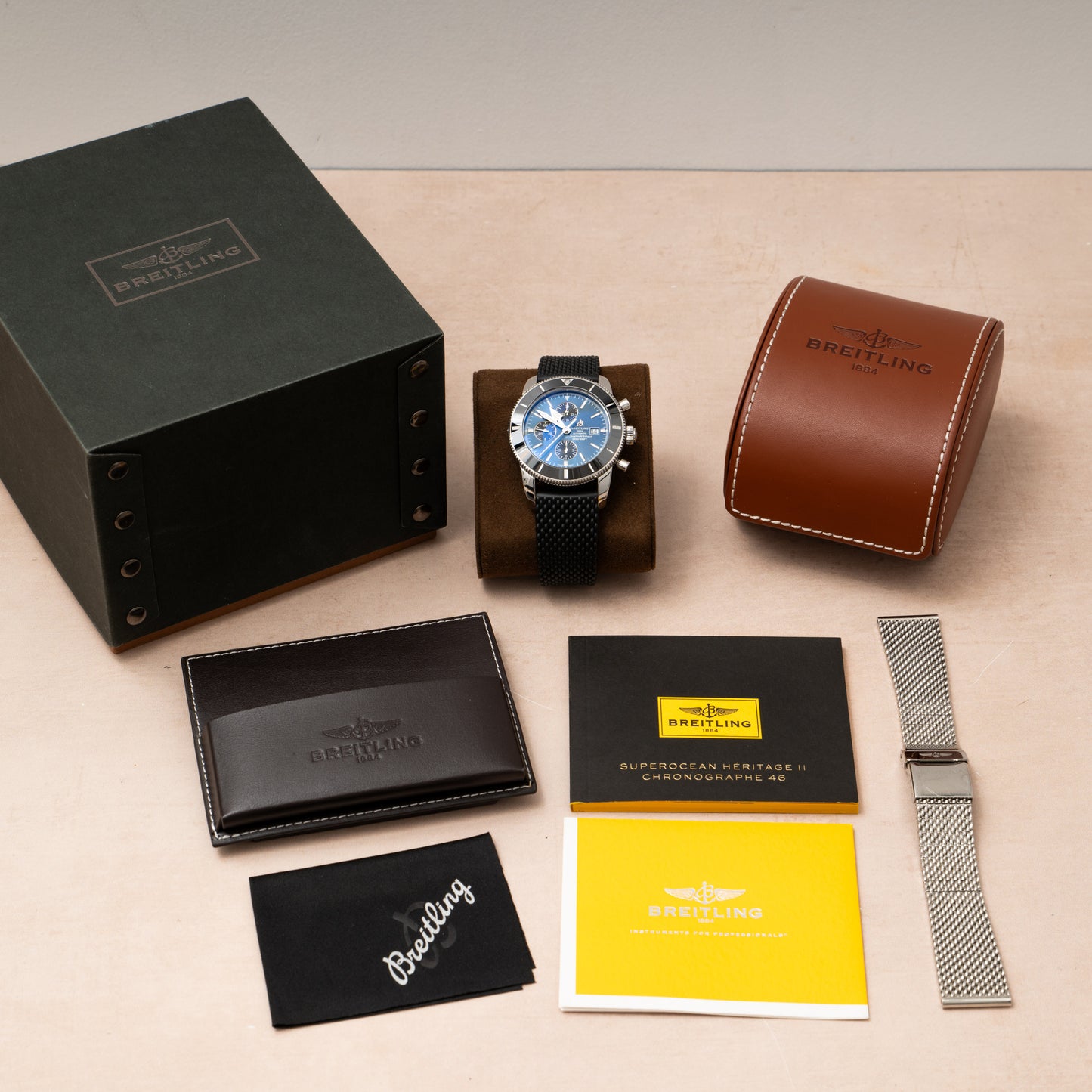Furthermore, this watch comes with its box, leather watch travel case, books, signed leather card holder, cards and an additional signed stainless steel mesh bracelet! This is a great opportunity to take an excellent contemporary Breitling for a spin!