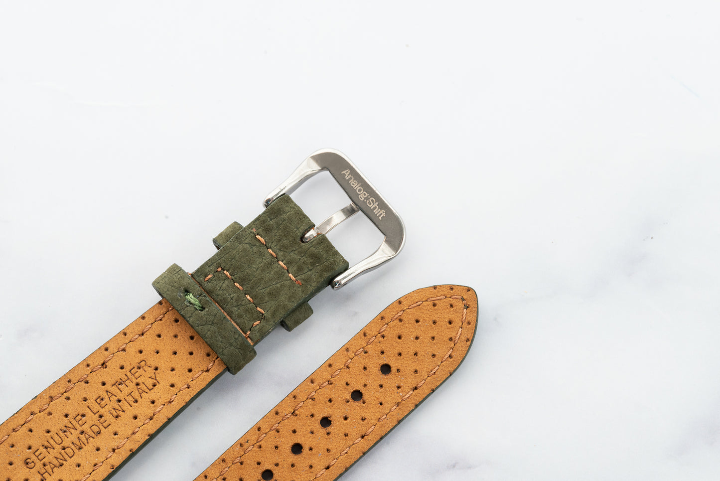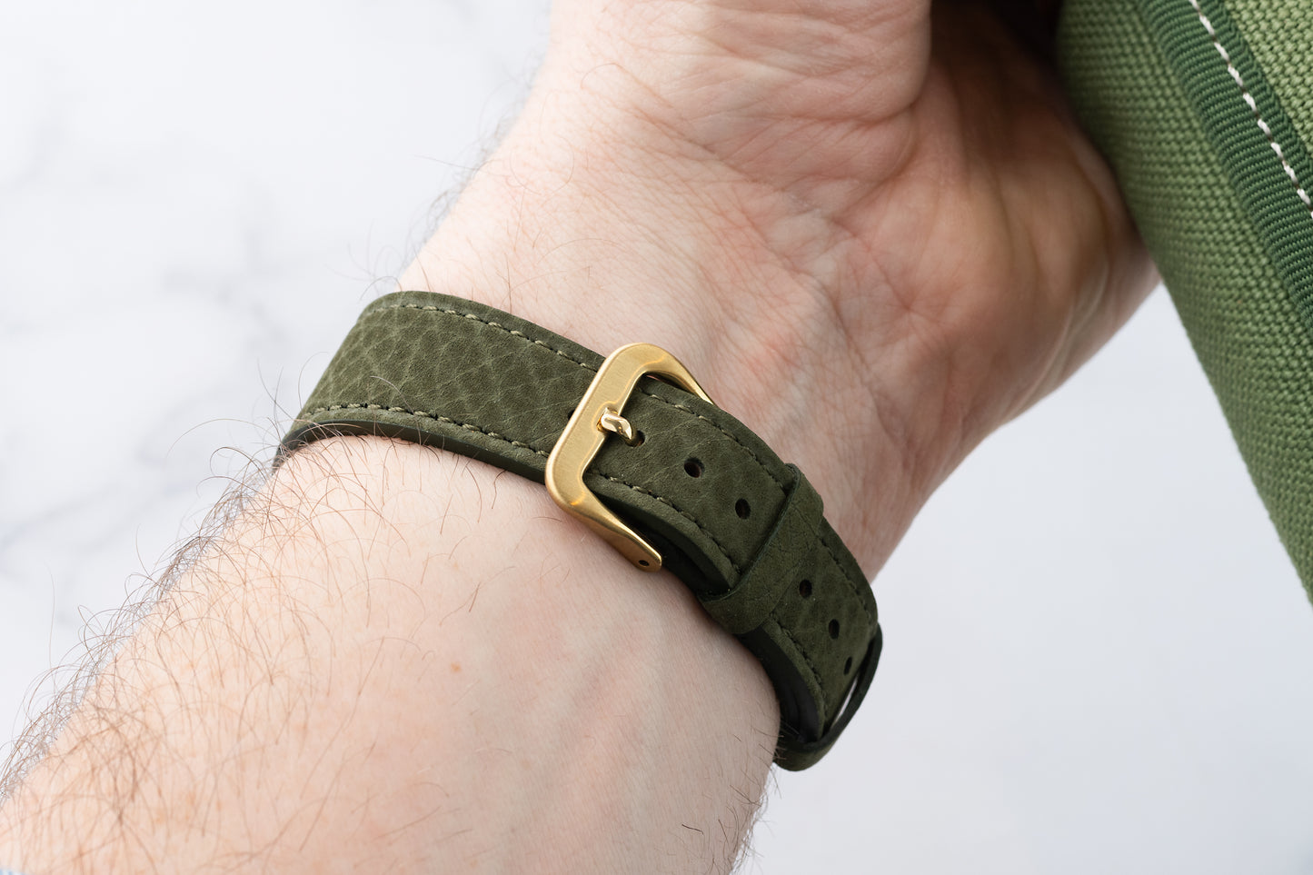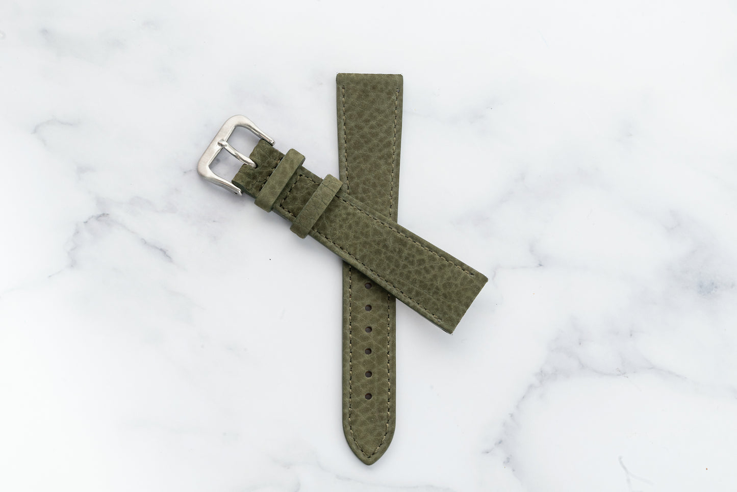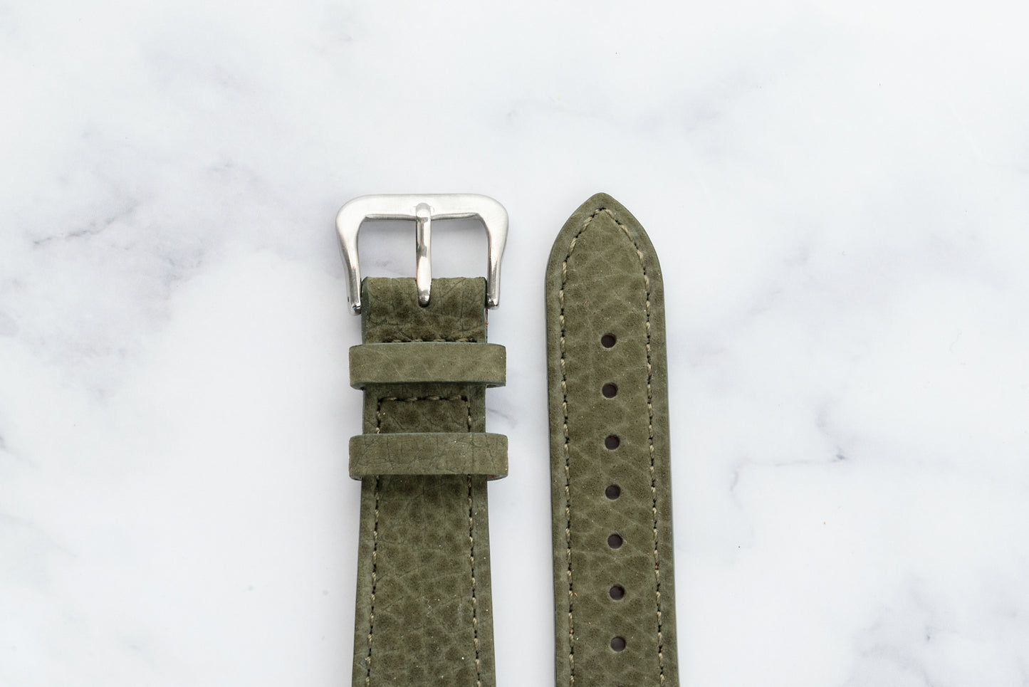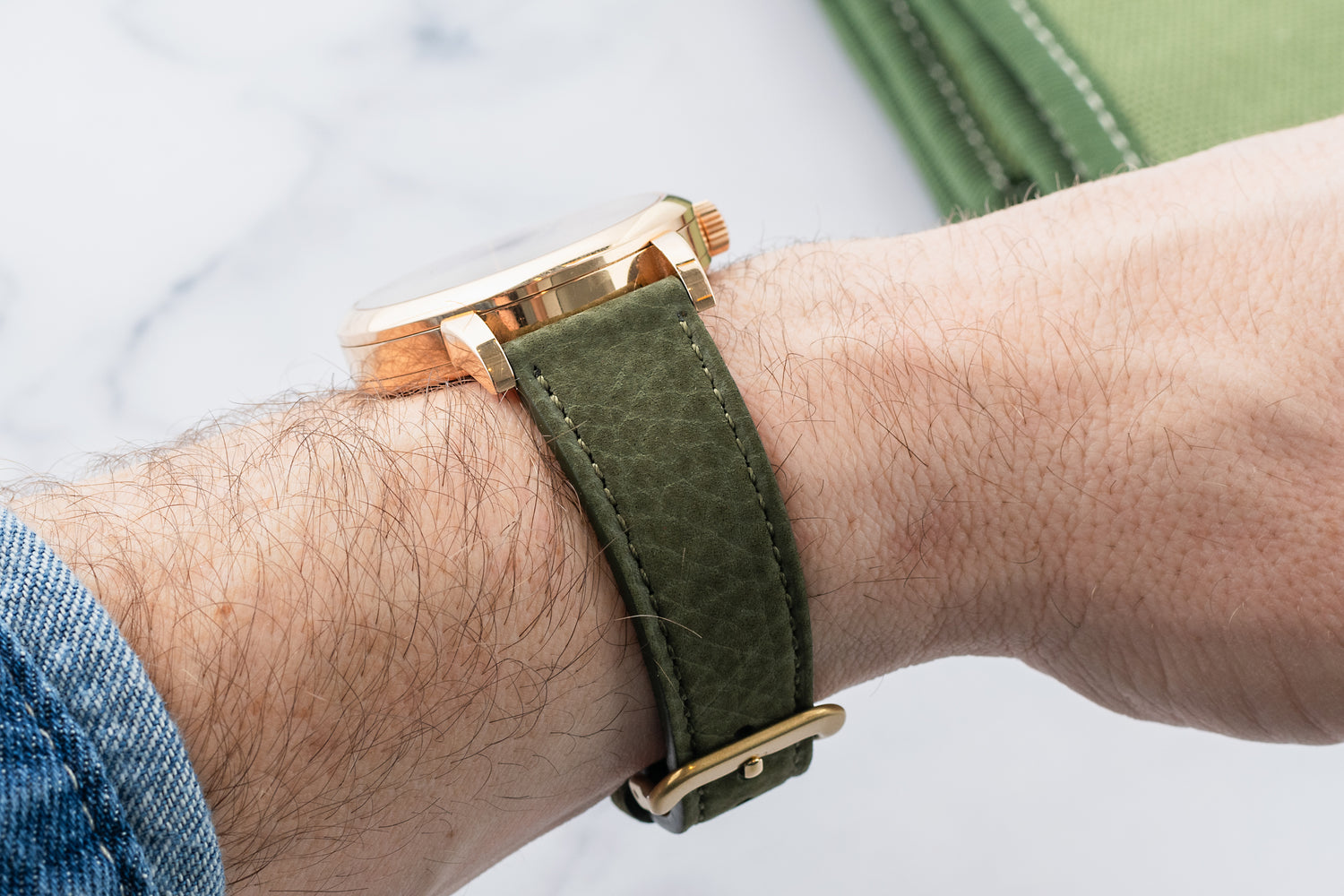 Inspired by the open grasslands and rolling hills hugging the outskirts of Galway, Ireland, our Galway Green Nubuck Strap is produced a deep shade of mossy green found throughout Connemara National Park. It makes for a perfectly earthy pairing with both stainless steel or precious metal timepieces.