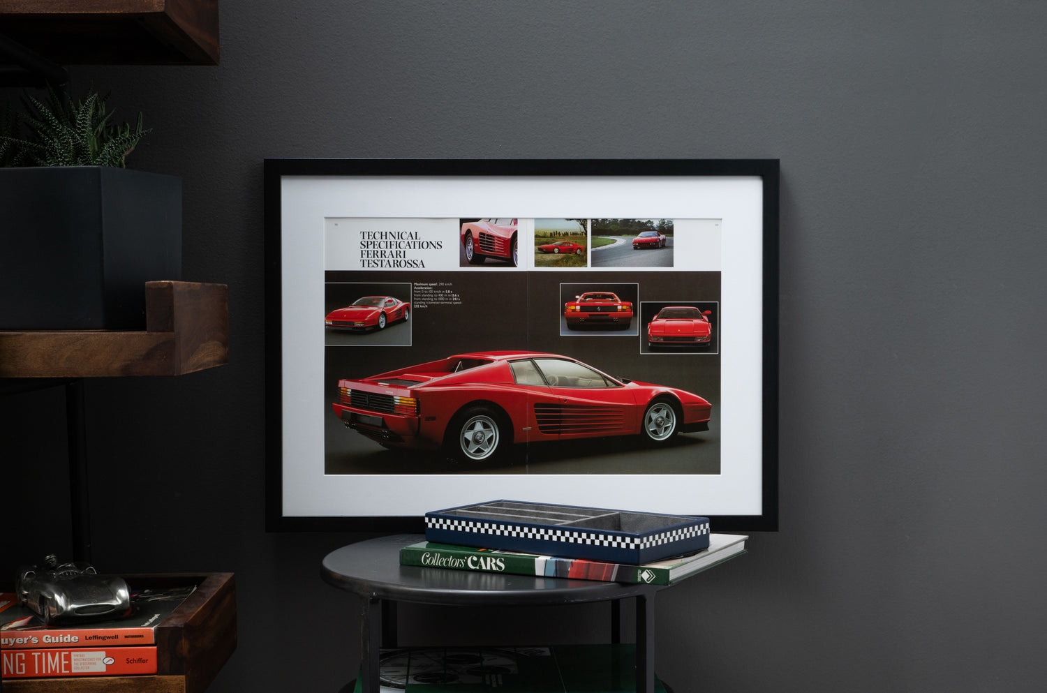 Whether or not you've got a Testarossa, this vintage ad deserves pride of place in your garage or office. After all, few cars become true icons — and the Testarossa is one of them.