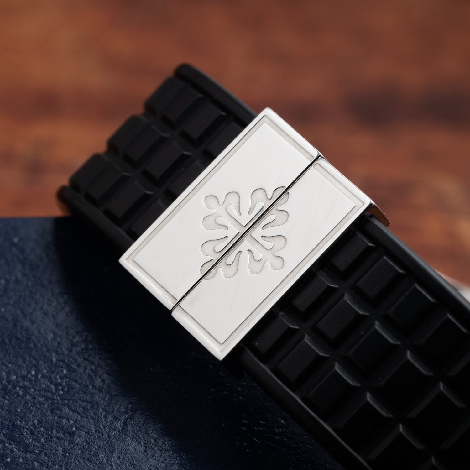 The Reference 5060J, launched in 1996 for the 20th anniversary of the Nautilus, was a kind of transitional watch. Borrowing features from Genta's 1976 design but doing away with the famed case “ears” of that porthole-inspired model and adding lugs, it provided the basis for the Reference 5060A in 1997, the first model to bear the Aquanaut name. This model would go on to form the basis of a full collection of luxury sports watches that provided the entry point into the Patek Philippe catalog.