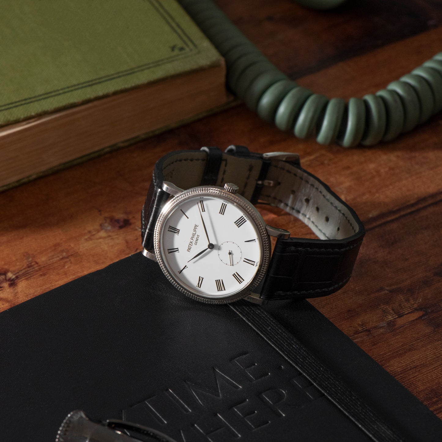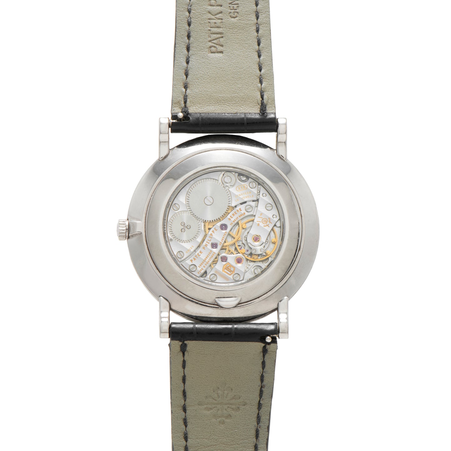 This piece comes fitted to a signed black alligator leather strap with a signed white gold pin buckle, and is powered by Patek Philippe's hand-wound Calibre 215 PS movement, thankfully visible via a sapphire exhibition caseback.